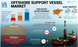 深海・超深海での掘削作業、洋上風力設備の設置・メンテナンスなど、オフショア事業の物流と運営を支える不可欠な存在として市場の重要性が高まっています。オフショアサポート船(OSV)は、さまざまなサービスとガス探査およびオフショアの石油生産プロセスをサポートするために設計された特殊な船または船舶です。これらの船舶は、オフショア石油およびガスプラットフォームの物流と運用とその設置において基本的な役割を果たします。